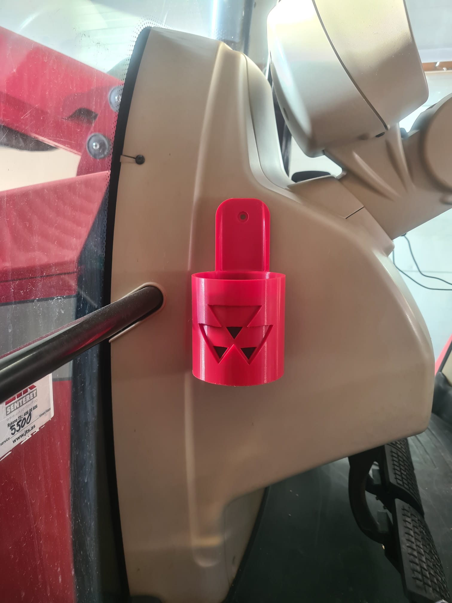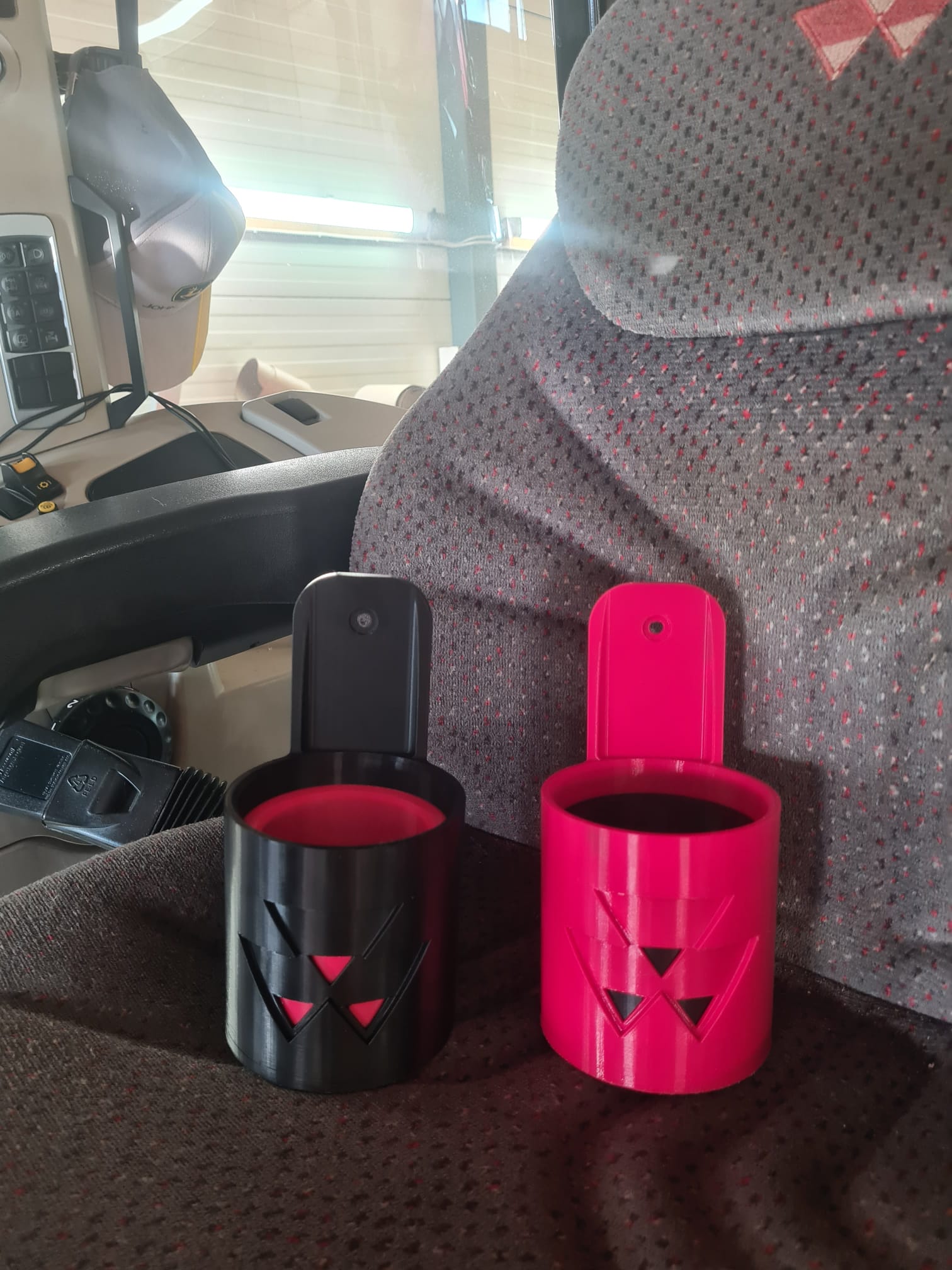 Vi tilbyr cupholdere med logo til ulike traktorer, anleggsmaskiner og lastebiler. Du kan også bestille med din egen logo eller en valgfri tekst – perfekt for personlig tilpasning eller firmaprofilering.
