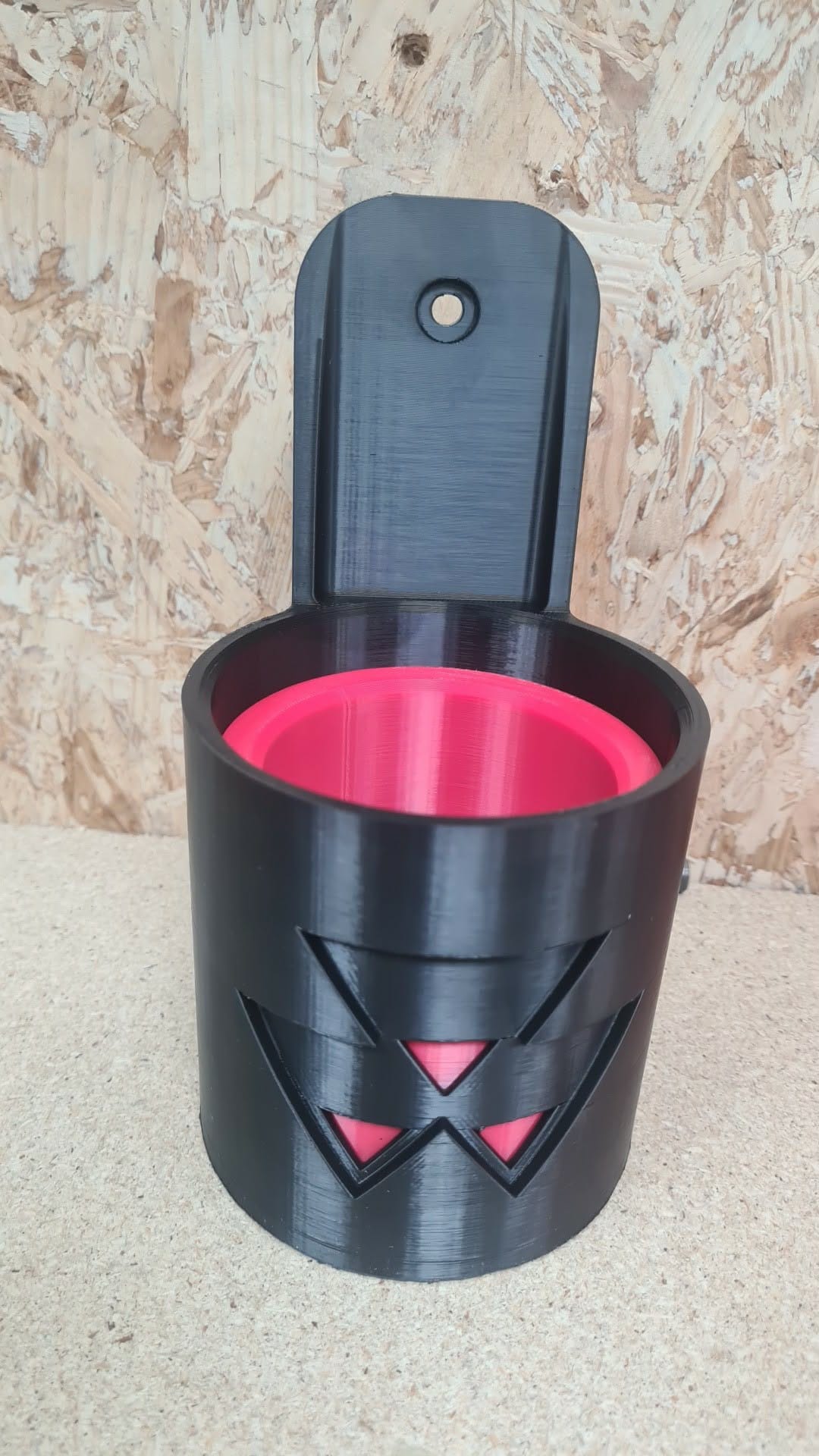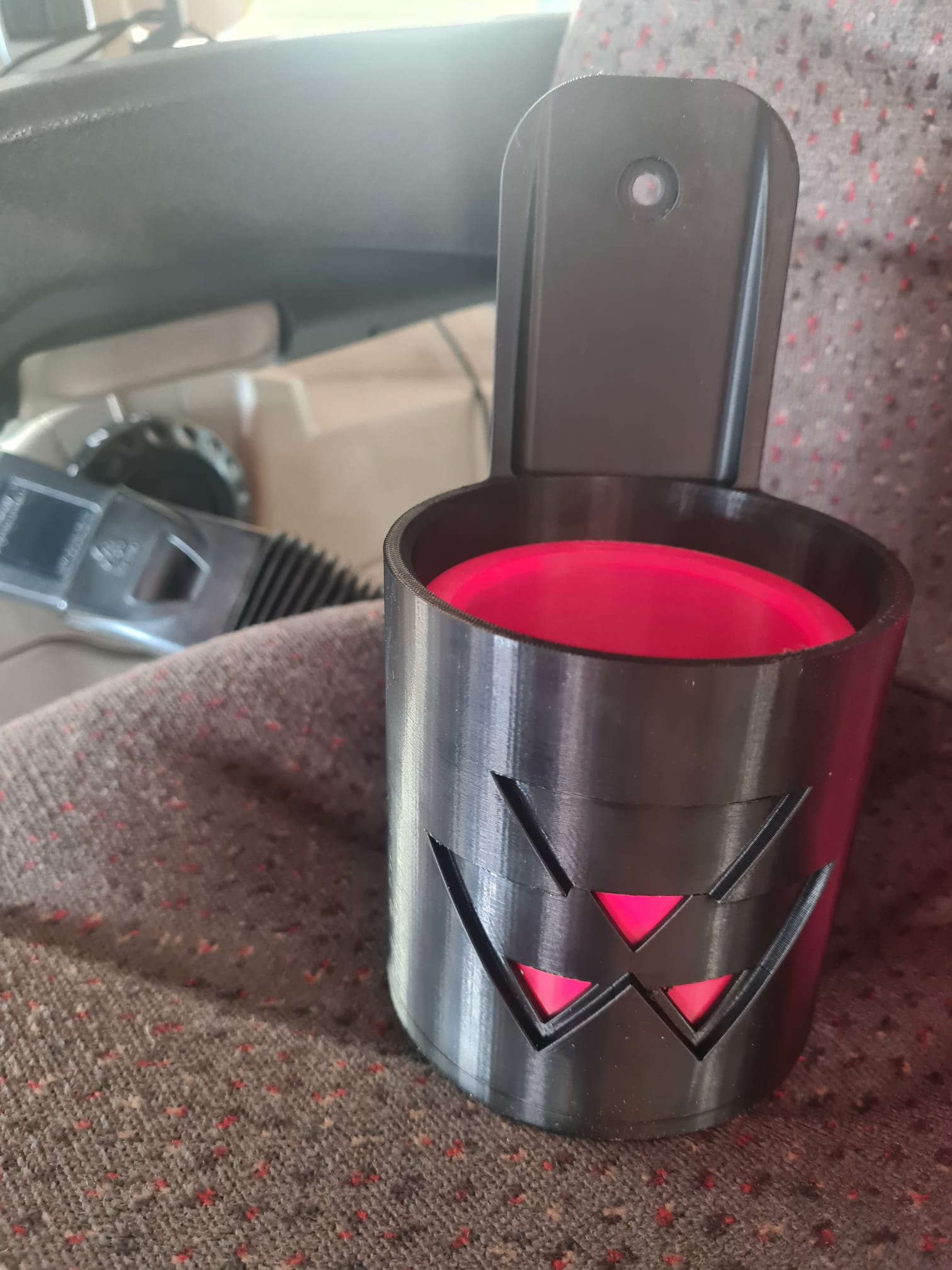 Kupholderen leveres i to innvendige størrelser for større kopper, samt med en ekstra innsats som passer til mindre kopper og drikke.
